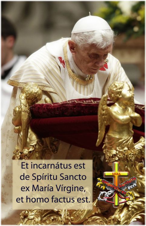 L’angelo del Signore si presenta ai pastori e la gloria del Signore li avvolge di luce. «Essi furono presi da grande timore» (Lc 2,9). L’angelo, però, dissipa il loro timore e annuncia loro «una grande gioia, che sarà di tutto il popolo: oggi, nella città di Davide, è nato per voi un Salvatore, che è Cristo Signore» (Lc 2,10s). Viene loro detto che, come segno, avrebbero trovato un bambino avvolto in fasce, adagiato in una mangiatoia. «E subito apparve con l’angelo una moltitudine dell’esercito celeste, che lodava Dio e diceva: “Gloria a Dio nel più alto dei cieli e sulla terra pace agli uomini del [suo] compiacimento”» (Lc 2,12-14). L’evangelista dice che gli angeli «parlano». Ma per i cristiani era chiaro fin dall’inizio che il parlare degli angeli è un cantare, in cui tutto lo splendore della grande gioia da loro annunciata si fa percettibilmente presente. E così, da quell’ora in poi, il canto di lode degli angeli non è mai più cessato. Continua attraverso i secoli in sempre nuove forme e nella celebrazione del Natale di Gesù risuona sempre in modo nuovo. Si può ben comprendere che il semplice popolo dei credenti abbia poi sentito cantare anche i pastori, e, fino ad oggi, nella Notte Santa, si unisca alle loro melodie, esprimendo col canto la grande gioia che da allora sino alla fine dei tempi a tutti è donata.