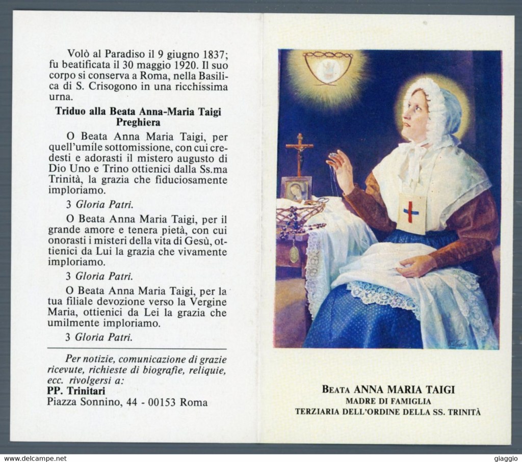 La beata Anna Maria Taigi fino all’ultima sera prima di morire volle recitare il Rosario con la famiglia e nel benedire per l’ultima volta i figli, raccomandò loro di non lasciare in nessun giorno la recita in comune del Rosario. Quanti santi ci hanno fatto di queste raccomandazioni, ma quante volte li abbiamo ascoltati ed accolto i loro consigli e suggerimenti? Se può destare meraviglia la vita di questa donna, perché non ci lasciamo attrarre anche dai suoi consigli cercando di vivere una vita fedele a Cristo così che quando giungerà la nostra ora anche noi possiamo essere trovati pronti?