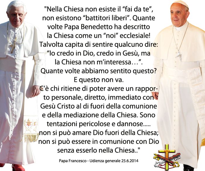 “L’indissolubile intreccio tra fede e carità. …. risulta chiaro che non possiamo mai separare o, addirittura, opporre fede e carità. Queste due virtù teologali sono intimamente unite ed è fuorviante vedere tra di esse un contrasto o una «dialettica». Da un lato, infatti, è limitante l’atteggiamento di chi mette in modo così forte l’accento sulla priorità e la decisività della fede da sottovalutare e quasi disprezzare le concrete opere della carità e ridurre questa a generico umanitarismo.