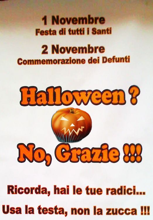 – Disapprovando e dissociandosi dalle ‘feste’ di Halloween. Facendolo, non ci si arrende a subire quella che, purtroppo, non è soltanto una ‘moda’ apparentemente inarrestabile, ma un chiaro attacco alle nostre radici culturali e religiose.