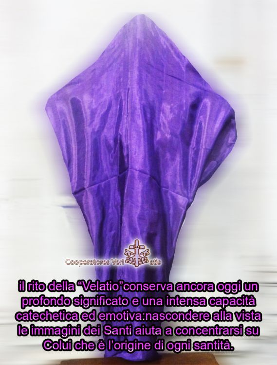 Al di là della sua origine, il rito della “Velatio”conserva ancora oggi un profondo significato e una intensa capacità catechetica ed emotiva:nascondere alla vista le immagini dei Santi aiuta a concentrarsi su Colui che è l’origine di ogni santità. Egli è colui che rende accessibile il cielo agli uomini. Senza di lui la nostra vita non avrebbe più una dimensione trascendente, sarebbe un vagare nelle tenebre del peccato e “nell’ombra della morte”. La velatura delle croci sottolinea anche fisicamente la privazione di Cristo, il “venir meno dello sposo”: “Con oppressione e ingiusta sentenza fu tolto di mezzo; chi si affligge per la sua sorte? Sì, fu eliminato dalla terra dei viventi” dice il profeta Isaia (53,8).