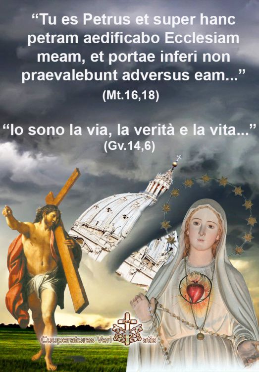 O ci crediamo o non ci crediamo, non si accettano le mezze misure. Diverso è discutere, invece, sul fatto che questa promessa e questa garanzia di Nostro Signore Gesù Cristo non cancella il dramma del “fumo di Satana” entrato dentro la Chiesa – come denunciò Paolo VI – e che “vide” Leone XIII, e dunque di un certo oscuramento della Verità ad opera dei Pastori della Chiesa, compreso il Papa, un Papa, o alcuni Papi. Anzi, proprio questa promessa di Gesù ci fa capire che la Chiesa deve attraversare un tempo tanto difficile da far pensare ad una sua caduta, agli inferi che prevalgono.