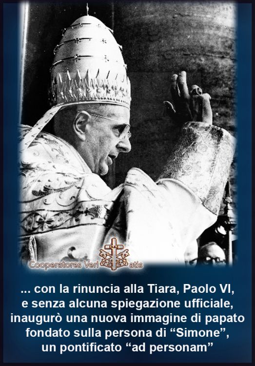 La scelta peggiore la fece, a nostro parere (ma nessuno fino ad oggi ha potuto o saputo smentire), Paolo VI con la dismissione della tiara. Perché diciamo questo? Semplice: togliendo la tiara Paolo VI ha tolto la protezione al papato.