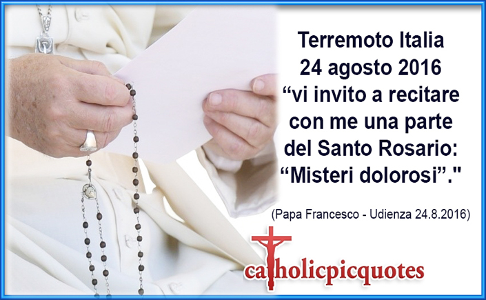 Il santo Padre Francesco ha interrotto l’Udienza generale di mercoledì 24 agosto a causa del grave sisma che ha colpito l’Italia centrale, queste le sue parole che vogliamo condividere: