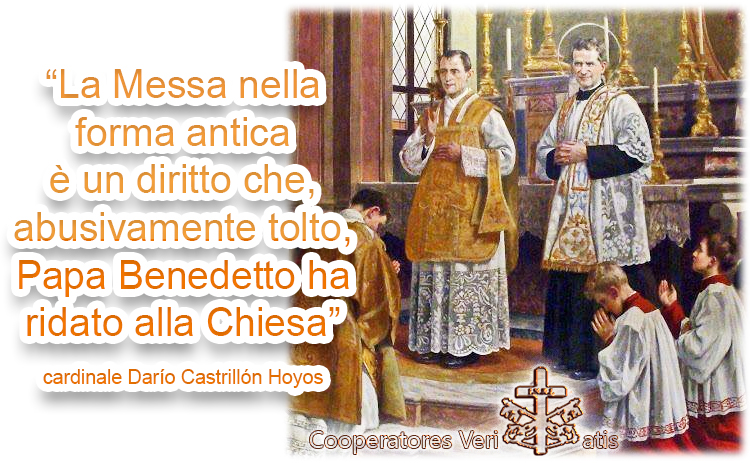 “Perciò è lecito celebrare il Sacrificio della Messa secondo l’edizione tipica del Messale Romano promulgato dal Beato Giovanni XXIII nel 1962 e mai abrogato, come forma straordinaria della Liturgia della Chiesa…”(art.1 della Lettera Summorum Pontificum)