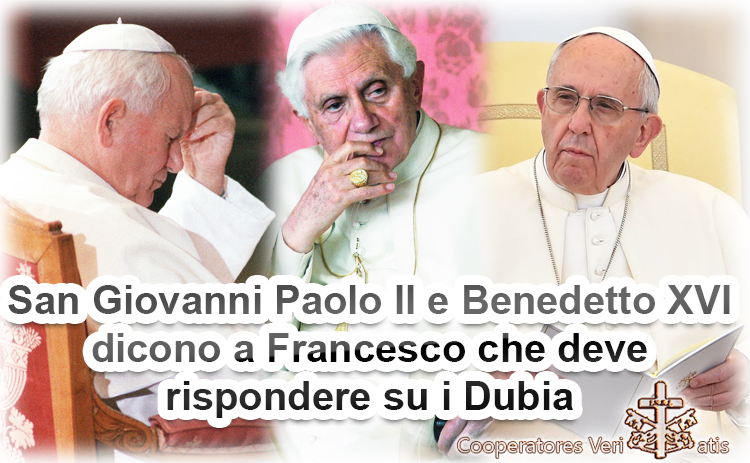 “di fronte ai dubia”…. come direbbe ancora oggi Giovanni Paolo II, e come hanno chiesto i cardinali onesti, anche il suo Successore, Papa Francesco, ha L’OBBLIGO E IL DOVERE di rispondere che neppure lui ha il potere di trattare i Sacramenti con suo libero arbitrio! Giovanni Paolo II aveva già chiarito quali fossero le risposte da dare: