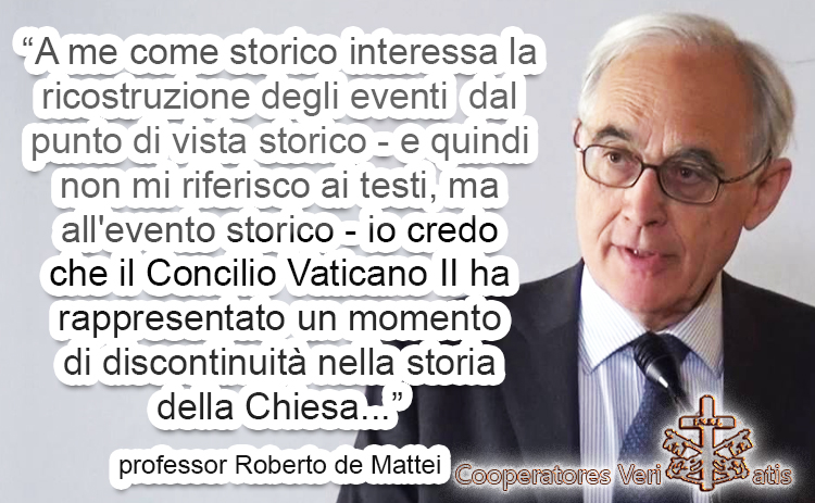 Ringraziamo il Professor de Mattei per averci autorizzati a riproporre questa intervista da noi trascritta in word affinché, attraverso una lettura calma e riflessiva, le parole dette possano aiutarci ad un sano discernimento e al vero ed autentico dialogo mai fine a se stesso, ma per giungere alla Verità.