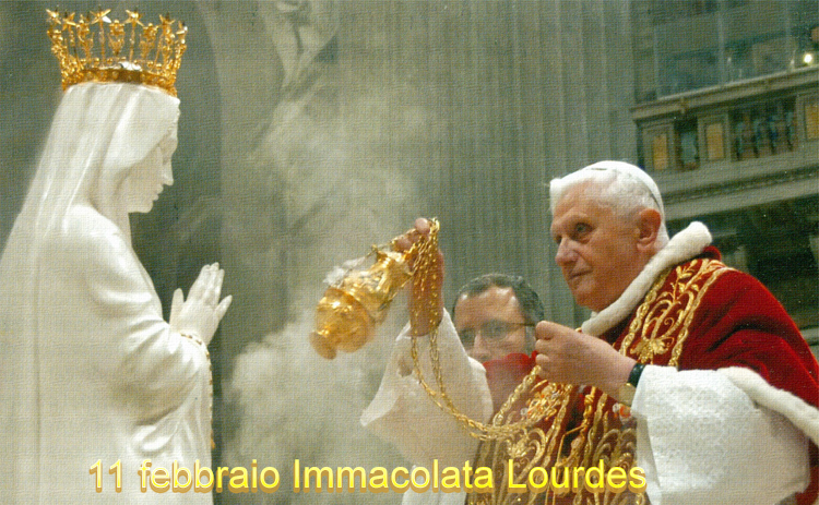 Ed eccoci arrivati al tristissimo giorno dell’11 febbraio 2013, giorno in cui riteniamo di non aver nulla da festeggiare, ma da pregare intensamente ed incessantemente, poiché non accettiamo e non riconosciamo “l’ufficio” petrino di un “papa EMERITO”, dal momento che Gesù Cristo ad un solo Pietro alla volta, ha consegnato il ruolo del Vicario, tuttavia è evidente che Benedetto XVI sta cercando di dirci “qualcosa” che al momento è difficile da comprendere, ma che dobbiamo in qualche modo fidarci di Cristo. Giorno, dunque, luttuoso per tutta la Santa Chiesa, luttuoso per la Sede petrina. Vista la grave apostasia che stiamo vivendo nella Chiesa, forse è bene per tutti noi riflettere in quel “ritirasi sul monte e pregare” insieme a Benedetto XVI, pregare per perseverare nella vera fede, per resistere all’apostasia, per limitare i danni che la corruzione del mondo ci sta imponendo ed infliggendo. Noi, in questo giorno, in ginocchio davanti alla Grotta di Massabielle, imploriamo l’Immacolata Vergine Maria, la Vergine Santissima apparsa a Lourdes, e alla dolcissima Bernadette, l’aiuto dal Cielo in questa battaglia contro le tenebre che inesorabilmente avanzano.