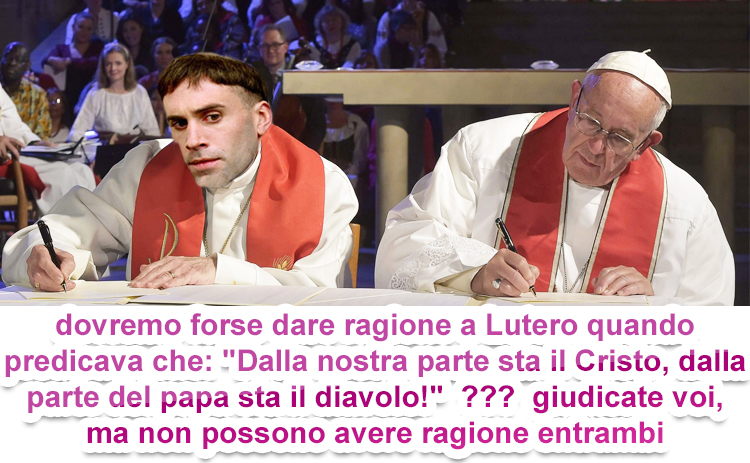 Se così non fosse, dovremo forse dare ragione a Lutero quando predicava che: “Dalla nostra parte sta il Cristo, dalla parte del papa sta il diavolo!” giudicate voi! ma non possono avere ragione entrambi!