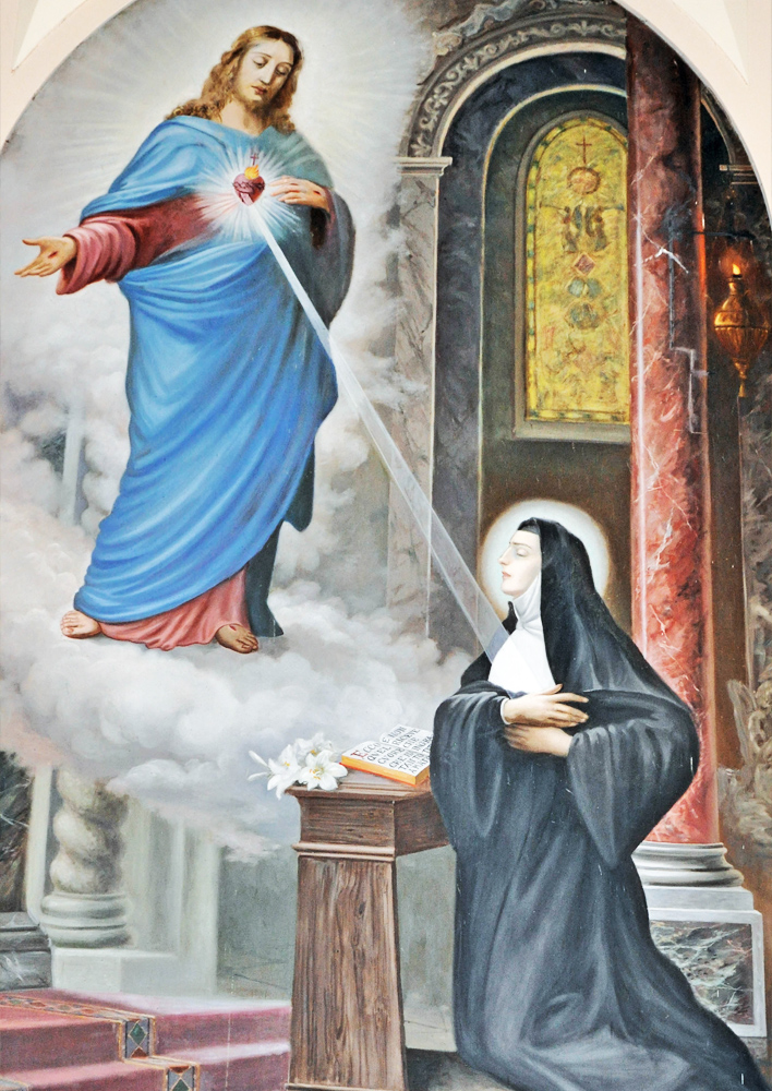 Ma la prima Apparizione che cominciò a riguardare tutta la Chiesa e a coinvolgere il magistero ecclesiale universale, fu il Cuore Divino di Gesù. Era la festa di san Giovanni evangelista, il 27 dicembre del 1673, quando Gesù apparve alla visitandina santa Margherita Maria Alacoque (1647-1690), invitandola a prendere il posto che san Giovanni aveva occupato durante l’Ultima Cena, ovvero posare il capo sul suo Cuore e le disse: «Il mio divino Cuore è così appassionato d’amore per gli uomini, che non potendo più racchiudere in sé le fiamme della sua ardente carità, bisogna che le spanda. Io ti ho scelta per adempiere a questo grande disegno». Margherita Maria ebbe tali apparizioni per 17 anni, sino alla morte.