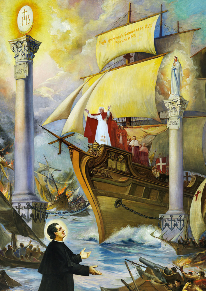 Il Tabernacolo con Gesù Ostia-Santa, Dio Vivo e vero e l’Immacolata, il suo Rosario; Eucaristia e Maria Santissima Ausiliatrice, proprio la famosa immagine del sogno profetico di san Giovanni Bosco delle due Colonne, i due approdi sicuri per la nave-Chiesa sbattuta dalle onde delle tempeste di questo tempo in mano ai demoni… Vedete come è importante conoscere, allora, la nostra storia, quella che ci riportano i Santi? Vedete come tutto è collegato e come il tutto prende forma?