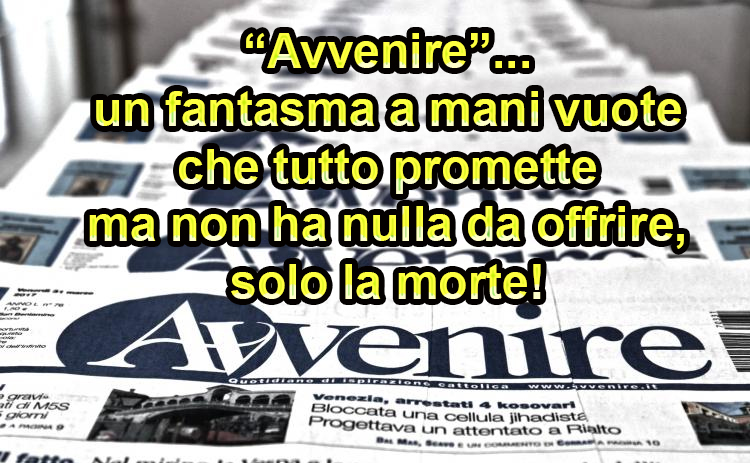 Non si tratta più di invitare il “piccolo gregge” e le persone intelligenti a risparmiare quel soldino, per non comprare più Avvenire che di fatto è diventato il giornale della morte per l’Anima…. ma sta diventando sempre più urgente aiutare a far comprendere i danni che – certi argomenti intrapresi contro la dottrina morale della Chiesa e la stessa Legge di Dio – questa gente sta seminando, si legga qui cosa sta accadendo.