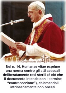 Questo testo andava contro una sorta di impostazione ideologica del neomalthusianesimo che voleva essere un controllo di fatto sulle nascite e sullo sviluppo della realtà umana. In questo senso invece, Paolo VI ha riportato profondamente il tema nell’ambito antropologico, nell’ambito della vera libertà e della responsabilità che le persone devono avere nei confronti della propria vita e della vita degli altri. L’ enciclica è proprio l’implicazione antropologica del discorso riguardo all’unità che c’è nella vita matrimoniale tra l’amore reciproco degli sposi e l’apertura alla vita VOLUTO DA DIO, non a caso si parla di quella fedeltà “al disegno di Dio” il quale non prevede che alcun ostacolo lo fermi o lo snaturalizzi per arrivare così a spiegare quali sono i mezzi “leciti”. L’Humanae Vitae, perciò, non è affatto un testo di divieti per cui è necessario oggi “abbattere i muri dottrinali”, come pretenderebbe Avvenire, al contrario, è un testo DI APERTURA della mente e del cuore, della stessa ragione alla VITA che verrà.