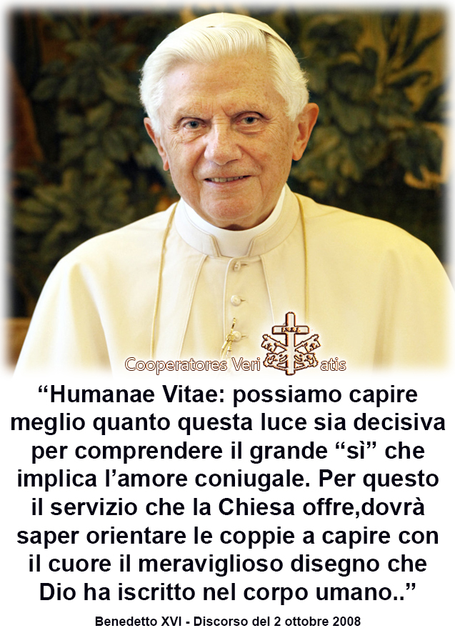 Il 3 ottobre 2008, così si espresse Benedetto XVI per i 40 anni della Humanae Vitae: