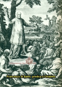 Il successo di San Francesco di Sales è presto detto in questo accorato suo appello: “LA DOTTRINA CATTOLICA E’ COME UNA RADICE NELLA TERRA piantata dalla Divina Provvidenza nella sua Chiesa“. Ma questa radice – spiega – necessita di nutrimento e non di cambiamento; per crescere è necessario che LE MEMBRA si attivino e per nutrirla bisogna esserne testimoni fedeli e santi. Sales è instancabile nel predicare le medesime concezioni, a volte anche in quattro o cinque villaggi al giorno, non importa se trova dieci o cinque persone, continua e catechizza ovunque si trovi, nelle case, in ciò che è rimasto delle chiese, nelle piazze, discute in pubblico e in privato, a cattolici o protestanti, sindaci e ministri del suo tempo, non si occupa di politica MA DI ANIME DA SALVARE! Insieme col fratello Bernardo si inventa una specie di predica DIALOGATA.