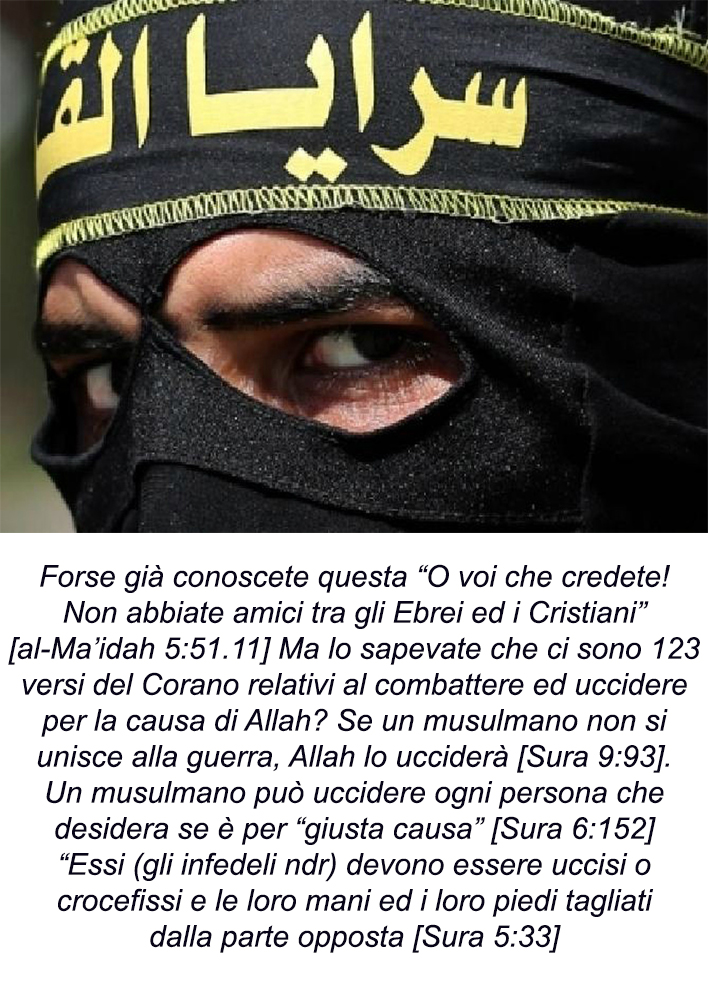 Ma ciò che doveva sapere mons. Betori è che con questi soldi avrebbe venduto la vita degli italiani non soltanto cattolici, ma di tutti, persino di quei musulmani che oggi, integrati da anni nel nostro territorio, al momento della resa dei conti dovranno decidere da che parte stare, per aver salva la propria vita: o contro di noi o con l’Islam.