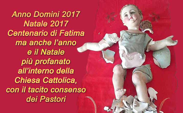 Riteniamo dover meditare su questo Anno 2017 ma anche sul suo Natale 2017 che resterà, tristemente, legato alle fondamenta di una deriva cattolica senza precedenti nella storia della santa Chiesa e dal suo interno. Siamo in piena apostasia legalizzata, giustificata, verso la quale il Papa e i Vescovi tacciono, per non dire che quasi se ne compiacciono, dal momento che il tacere è – in questi casi – un senso di condivisione.