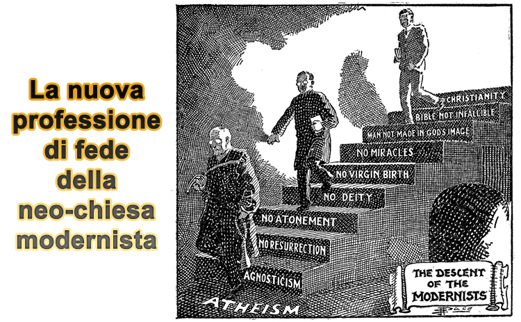 Cari Amici, come vi avevamo anticipato qui per la prima parte, eccoci alla seconda di questa hit-parade della neo chiesa. Bisognava occuparsi prima dei Dieci Comandamenti, che sono alla base del nostro Credo autentico, per occuparci ora dei dodici Articoli che sono le fondamenta di tutta la Dottrina Cattolica, il famoso “Depositum Fidei” di cui parla già san Paolo in quel…. Fidei Depositum: «O Timoteo, custodisci il deposito; evita le chiacchiere profane e le obiezioni della cosiddetta gnosi, professando la quale taluni hanno deviato dalla fede» (1Tm.6, 20). Per comprendere come la Chiesa abbia sempre difeso la vera Fede, cliccare qui per leggere l’esempio di san Francesco di Sales.