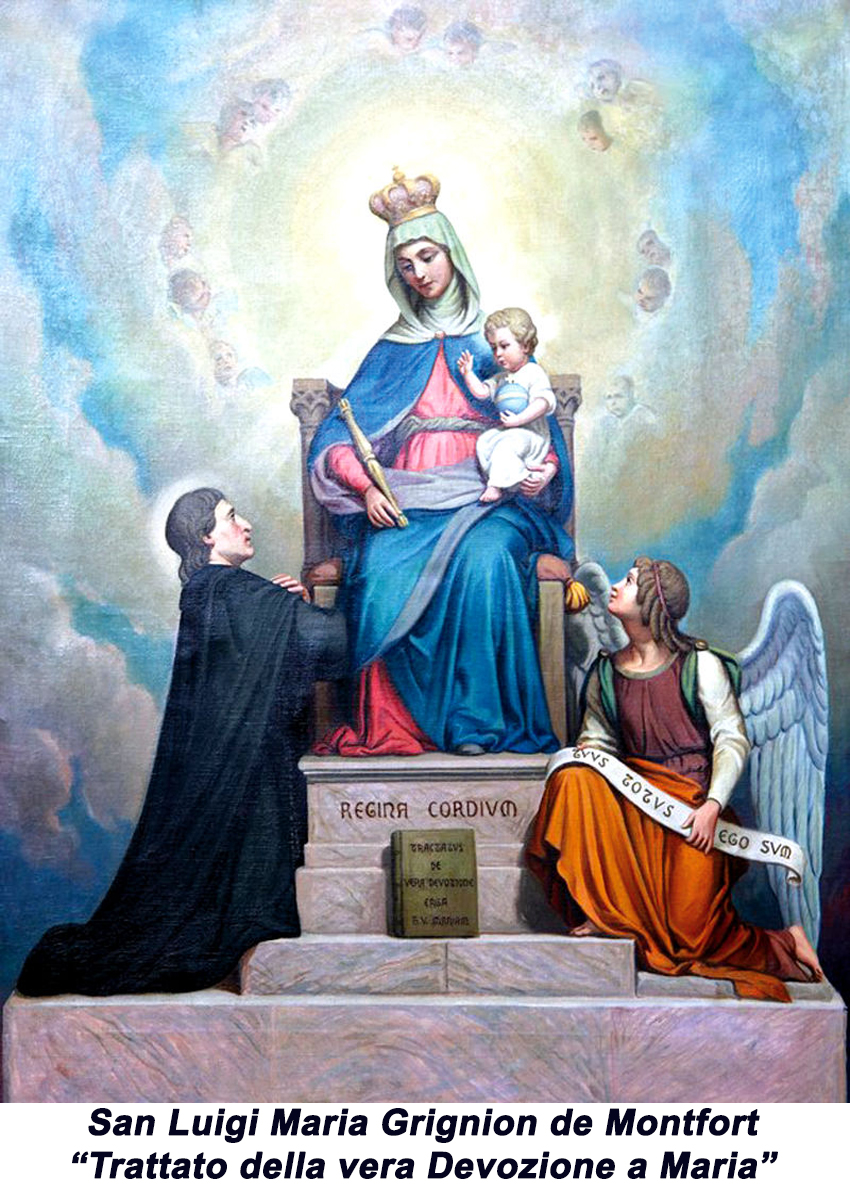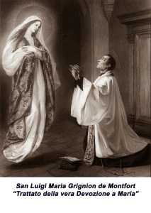 Alla Vergine Benedetta si chiedeva, si supplicava fin dalle origini del Cristianesimo, la benedizione, protezione, rifugio, liberazione dal pericolo, dalla prova, dalla tentazione. Questo aspetto è da tenere bene a mente per capire il Trattato del Montfort. Nel corso dei secoli poi, grandi Santi, ci hanno illuminato su questa Devozione autenticamente mariana, così come la Chiesa stessa poneva anche argini e limiti contro le eresie o le deficienze di certo culto mariano portato alle estreme conseguenze o fanatismi… Quindi è bene specificare che le “Apparizioni” Mariane non cominciano “oggi”, ma ci sono sempre state, anche san Gregorio Magno le ha ricevute, semplicemente perché in Cielo “non si sta in ozio”, ma si lavora, tutti lavorano intercedendo per noi, al progetto di Dio.