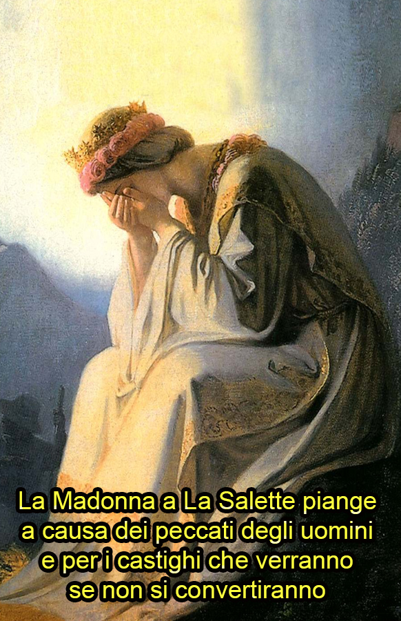 - “Tremate terra e voi che fate professione di adorare Gesú Cristo e che dentro di voi adorate solo voi stessi; tremate perché Dio sta per consegnarvi al Suo nemico, perché i luoghi santi sono nella corruzione, molti conventi non sono piú le case di Dio, ma i pascoli di Asmodeo e dei suoi. (…) Roma perderà la fede e diventerà la sede dell’anticristo. I demoni dell’aria con l’anticristo faranno dei grandi prodigi sulla terra e nell’aria e gli uomini si pervertiranno sempre piú. Dio avrà cura dei suoi fedeli servitori e degli uomini di buona volontà; il Vangelo sarà predicato dappertutto, tutti i popoli e tutte le nazioni conosceranno la verità. Io rivolgo un appello urgente alla terra; Io chiamo i veri imitatori di Cristo fatto uomo, il solo e vero Salvatore degli uomini; Io chiamo i miei figli , i miei veri devoti, quelli che si sono dati a Me perché io li conduca dal Mio divin Figlio, quelli che Io porto, per cosí dire, nelle mie braccia, quelli che sono vissuti del Mio Spirito; infine Io chiamo gli Apostoli degli ultimi tempi, i discepoli di Gesú Cristo che sono vissuti nel disprezzo del mondo e di loro stessi, nella povertà e nell’umiltà, nel disprezzo e nel silenzio, nella preghiera e nella mortificazione, nella castità e nell’unione con Dio, nella sofferenza e sconosciuti al mondo. È tempo che escano e vengano ad illuminare la terra. Andate e mostratevi come i miei cari figli; Io sono con voi e in voi purché la vostra fede sia la luce che vi illumina in questi giorni di disgrazia. Che il vostro zelo vi renda come gli affamati per la gloria e l’onore di Gesú Cristo. Combattete, figli della luce, voi, piccolo numero che ci vedete, perché ecco il tempo dei tempi, la fine delle fini. La Chiesa sarà eclissata, il mondo sarà nella costernazione…”