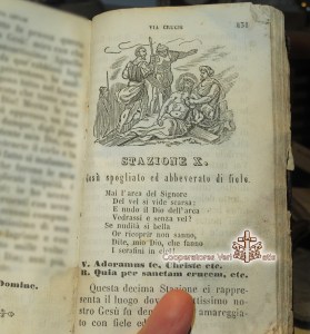 Questa decima Stazione ci rappresenta il luogo dove l’afflittissimo nostro Gesù fu denudato ed amareggiato di aceto e fiel.