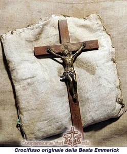 Solitamente, la Emmerick, obbligata a letto, teneva un crocefisso fra le mani che non si stancava mai di contemplare: lo custodiva con devozione a tal punto che le si formò una stimmata con la forma del Crocefisso sullo sterno e, non appena le sopraggiungevano dei forti dolori, ella subito rifletteva sulle Sacratissime Piaghe, specialmente quella del costato, e cercava sempre di pensare ai dolori che il Signore dovette patire quando si lasciò consegnare nelle mani degli uomini, per la loro salvezza.
