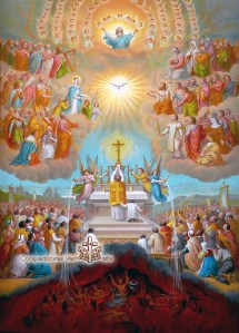 Comunione dei santi. Noi preghiamo per loro e loro pregano per noi: un mutuo soccorso fra chiesa militante e chiesa purgante.