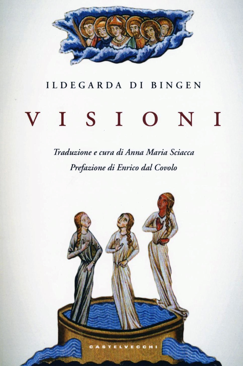 «Nell’anno 1170 dalla nascita di Cristo, rimasi per lungo tempo a letto ammalata. Allora, desta nel corpo e nello spirito, vidi una donna di una bellezza tale che la mente umana non è in grado di comprendere. La sua figura si innalzava dalla terra fino al cielo. Il suo volto risplendeva di sublime fulgore. Aveva lo sguardo rivolto al cielo. Era rivestita di un abito luminoso e splendente di seta bianca, e di un manto ornato di pietre preziose. Ai piedi aveva calzature di onice. Ma il suo volto era ricoperto di polvere e la sua veste strappata sul lato destro. Anche il manto aveva perso la sua singolare bellezza, e la parte superiore dei calzari era sudicia. La donna (sta indicando la Chiesa) innalzò ad alta voce un lamento verso il cielo: