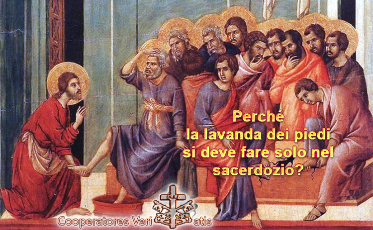 Con queste parole di Gesù – il rito della lavanda dei piedi – entra all’interno dei fatti accaduti in quel “Giovedì Santo” ricordati nella Tradizione viva della Chiesa, i cui pilastri teologici e dottrinali sono due: l’istituzione dell’Eucaristia e l’istituzione del Sacerdozio (il Sacramento dell’Ordine Sacro). Per comprendere la reazione di Pietro che rifiuta in un primo momento di farsi lavare i piedi, occorre capire che questo era un gesto vietato persino ai servi ebrei nei confronti dei loro padroni, essendo considerato troppo umiliante e quindi da riservare agli schiavi stranieri, cioè lavare loro i piedi.