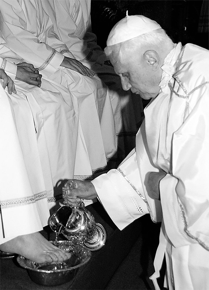 Nel gesto della lavanda dei piedi, quindi, caratteristica dell’ospitalità nel mondo antico, un dovere dello schiavo verso il padrone, della moglie verso il marito, del figlio verso il padre che veniva effettuata con un catino apposito e con un “lention” (asciugatoio) posti al di fuori della zona dove ci si riuniva per mangiare, diventa ora segno e simbolo del vero servizio nella Chiesa. Per gli Apostoli è il servizio liturgico e sacramentale. Spiega Benedetto XVI: