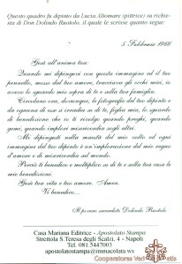 A seguire la Lettera che Don Dolindo scrisse a Lucia, per confermare l’ispirazione di Gesù stesso.