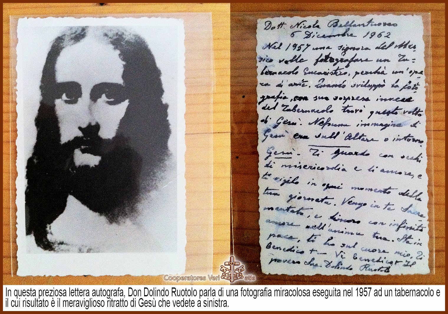 Nel 1957 una signora del Messico volle fotografare un Tabernacolo Eucaristico, perché un’opera d’arte. Quando sviluppò la fotografia, con sua sorpresa, invece del Tabernacolo trovò questo Volto di Gesù. Nessuna immagine di Gesù era sull’altare o intorno.