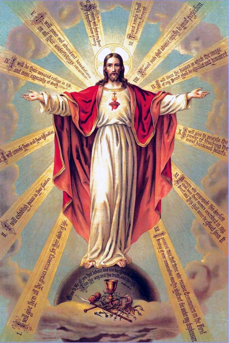 “Un venerdì durante la Comunione, Egli disse alla sua indegna serva, se mal non ricordo, queste parole: “Io ti prometto, nell’eccesso della misericordia del mio Cuore, che il suo amore onnipotente concederà, a quanti faranno la comunione il primo venerdì di ogni mese, per nove mesi consecutivi, la grazia della penitenza finale. Essi non morranno in mia disgrazia, ma riceveranno i Sacramenti ed il mio Cuore sarà il loro sicuro asilo in quell’estremo momento” (7).
