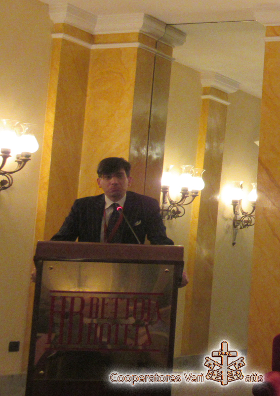 E’ intervenuto anche il dott. John Lamont, filosofo e teologo canadese, che ha insegnato in numerose Università e seminari ed è autore di molte opere, come il libro Divine Faith, una difesa ed una descrizione completa dell’interpretazione tomista della rivelazione divina e della virtù teologale della fede. Il suo intervento è stato mirato ad approfondire la: “Nouvelle théologie” e neomodernismo.