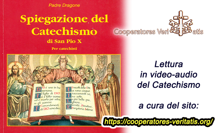 In questa pagina raccoglieremo la lettura – in video audio – degli articoli della nostra Fede Cattolica, tratti dal Catechismo detto “san Pio X” e spiegati dal reverendo Padre Dragone. Opera grandiosa, nella sua semplicità ed umile esposizione, che proprio per questo però è intramontabile e fondamentale. Qui invece la spiegazione di questo prezioso libro, come e dove acquistarlo.