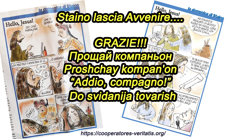 Non ce la prendiamo con Staino, come abbiamo avuto modo di spiegare qui dettagliatamente, nel mentre esternavamo la preoccupazione di una grave forma di catechismo deviante ed esegesi completamente falsa, ma ce la prendiamo con AVVENIRE che, definendosi “Voce dei Vescovi italiani” (CEI), non ha saputo – e forse non ha voluto – vedere e correggere l’errore, al contrario, ha dimostrato di saper sguazzare nella me****, pardon, nella melma, continuando a pubblicizzare con luciferino orgoglio, i frutti di queste loro porcate!