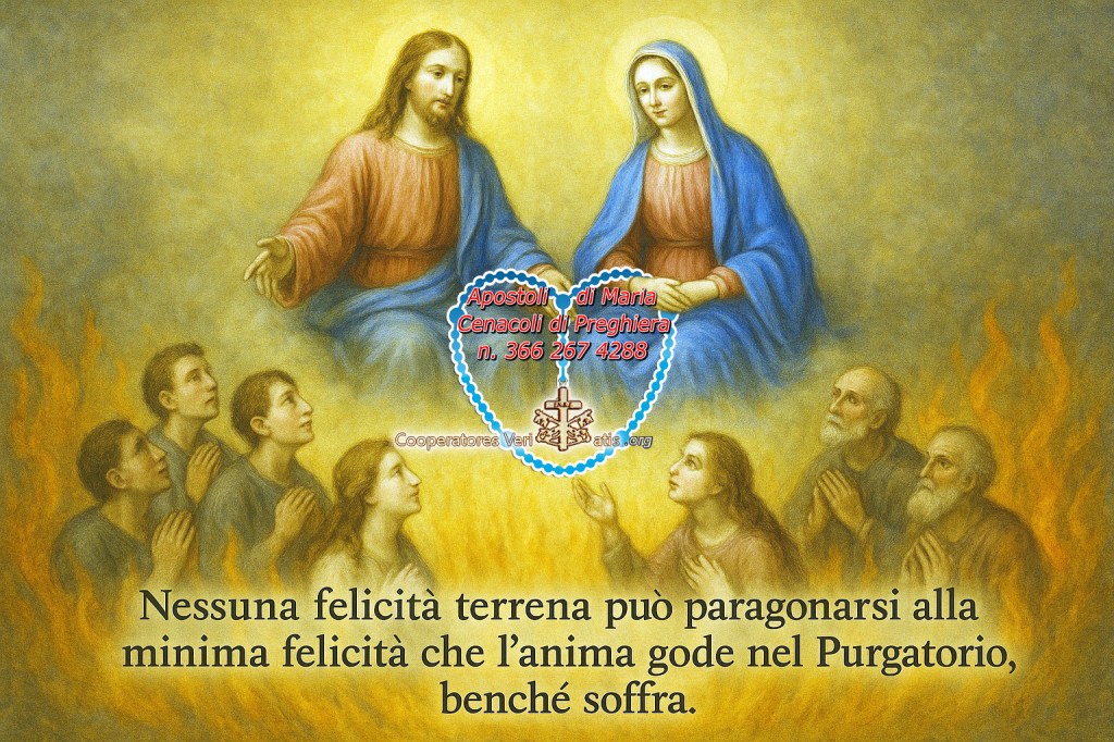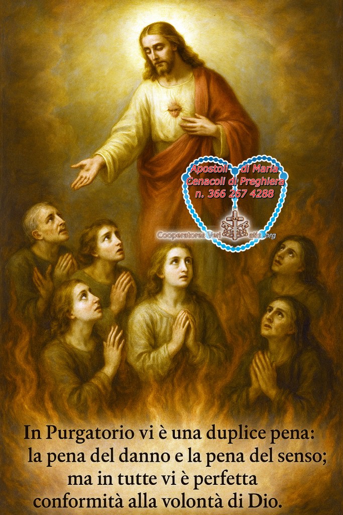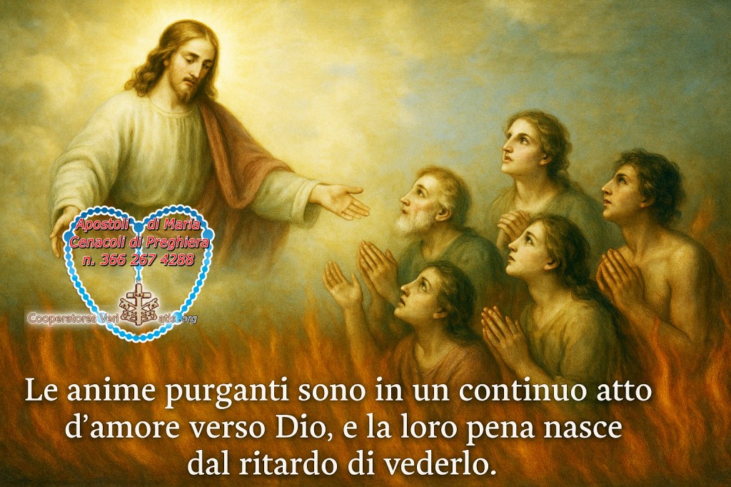 Viviamo questa seconda giornata dell’Ottavario con gratitudine. Ogni croce che accettiamo, ogni resistenza che cede alla grazia, è già un piccolo Purgatorio terreno. Visitando oggi i cimiteri e pregando per i nostri cari defunti, lasciamo che il fuoco della speranza accenda anche in noi il desiderio del cielo. Ogni atto d’amore, ogni preghiera offerta per un’anima, è un frammento di luce che si aggiunge alla loro gioia crescente. E quando preghiamo per loro, essi, nella carità che ormai non può più peccare, pregano per noi. È lo scambio più santo tra la terra e il cielo: il nostro dolore si fa speranza, la loro attesa si fa pace.