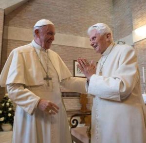 Tra le migliori opere che confutano questo tentativo di ridefinizione del Primato pontificio c’è un accurato saggio del cardinale Walter Brandmüller dal titolo Renuntiatio Papae. Alcune riflessioni storico-canonistiche[9]. La Tradizione e la prassi della Chiesa attestano con chiarezza – afferma il cardinale – che uno e solo uno è il Papa, e inscindibile nella sua unità è il suo potere. «La sostanza del Papato è così chiaramente definita dalla Sacra Scrittura e dalla Tradizione autentica, cosicché nessun Papa può essere autorizzato a ridefinire il suo ufficio». Se Benedetto XVI ritiene di essere davvero Papa, simultaneamente a Francesco, negherebbe la verità di fede per cui esiste un solo Vicario di Cristo e dovrebbe essere considerato eretico o sospetto di eresia. Qui il testo.
