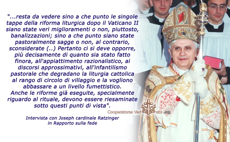 «…la presenza dell’antica liturgia non turba né minaccia l’unità, ma è piuttosto un dono destinato a costruire il corpo di Cristo del quale tutti noi siamo servitori» (card. J.Ratzinger)