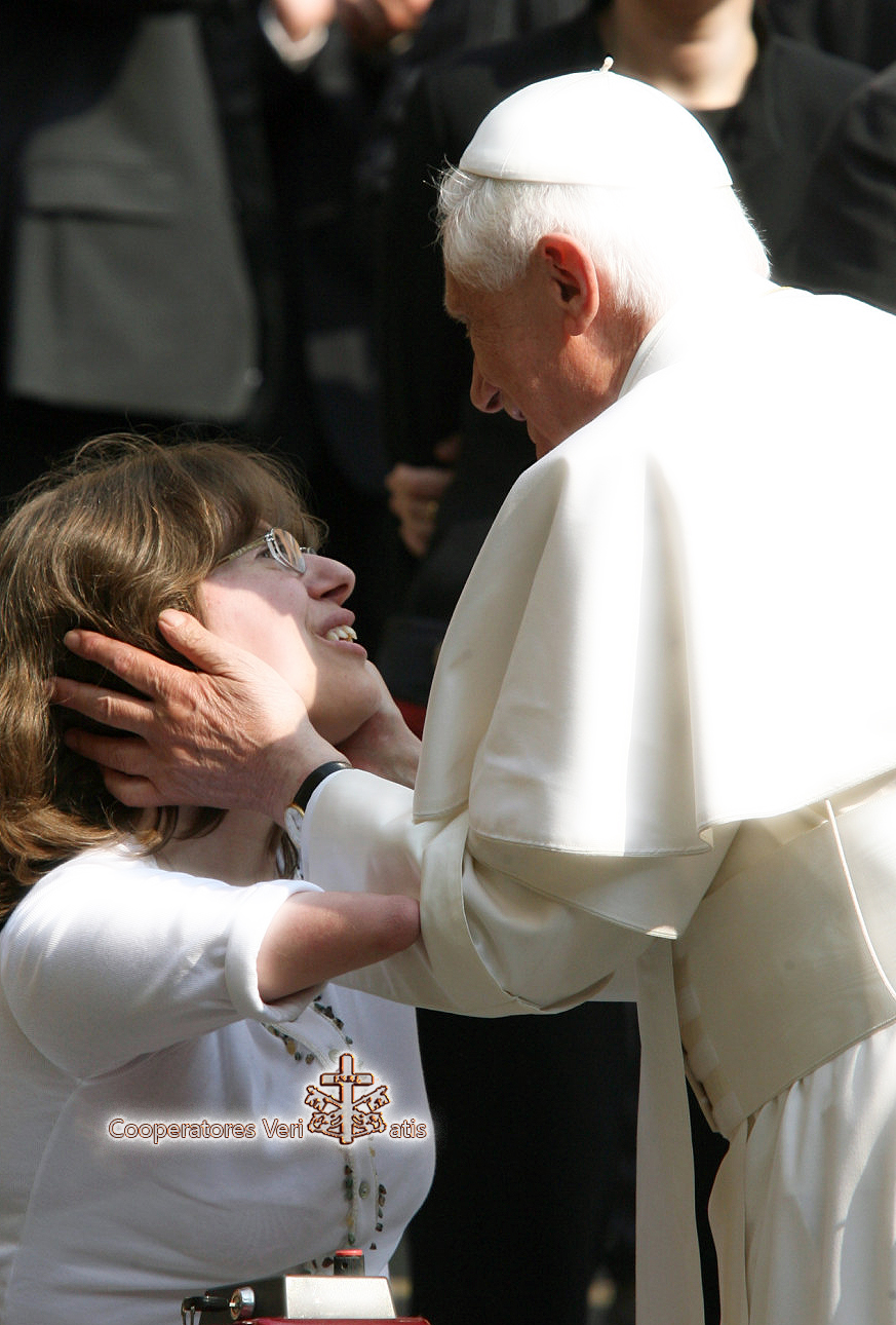 La dedizione quotidiana e l’impegno senza sosta al servizio dei bambini malati costituiscono un’eloquente testimonianza di amore per la vita umana, in particolare per la vita di chi è debole e in tutto e per tutto dipendente dagli altri. Occorre affermare infatti con vigore l’assoluta e suprema dignità di ogni vita umana. Non muta, con il trascorrere dei tempi, l’insegnamento che la Chiesa incessantemente proclama: la vita umana è bella e va vissuta in pienezza anche quando è debole ed avvolta dal mistero della sofferenza. E’ a Gesù crocifisso che dobbiamo volgere il nostro sguardo: morendo in croce Egli ha voluto condividere il dolore di tutta l’umanità. Nel suo soffrire per amore intravediamo una suprema compartecipazione alle pene dei piccoli malati e dei loro genitori. Il mio venerato Predecessore Giovanni Paolo II, che dell’accettazione paziente della sofferenza ha offerto un esempio luminoso specialmente al tramonto della sua vita, ha scritto: “Sulla croce sta il «Redentore dell’uomo», l’Uomo dei dolori, che in sé ha assunto le sofferenze fisiche e morali degli uomini di tutti i tempi, affinché nell’amore possano trovare il senso salvifico del loro dolore e risposte valide a tutti i loro interrogativi” (Salvifici doloris, 31).