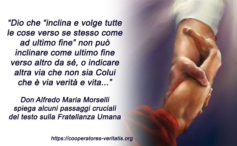 Il Documento sulla fratellanza universale firmato da papa Francesco e dal Grande Imam di Al-Azhar fa ancora — giustamente — discutere. Don Alfredo Maria Morselli, parroco, teologo e curatore del sito DogmaTV, lo esamina e spiega perché non è possibile che l’unico vero Dio possa ingannare gli uomini o lasciarli nell’ignoranza.