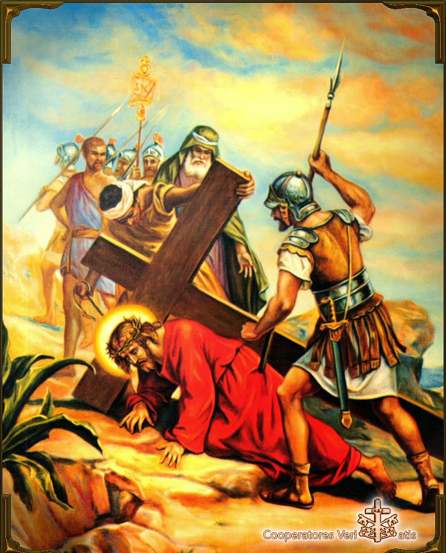Dunque, a sollevare l’affaticato mio Gesù ci vuole la forza per costringere un uomo che porti la croce per Lui. Purtroppo intendo, sono io quel Cireneo il quale non per volontà ma sforzato sostengo talvolta qualche leggerissima croce che voi mio Gesù mi offrite. Sconoscente che sono, dei miei capricci, del mio piacere, non temo stenti, non pavento pericoli, non stimo sudori, per Voi mio caro Gesù. Tutto mi aggrava, tutto fuggo, tutto m’annoia, quanto sono tiepido, quanto sono languido. O Gesù, Gesù amor mio, datemi un poco di fervore, animate il mio coraggio a patire con Voi perché possa con Voi eternamente godere e non più offenderVi.