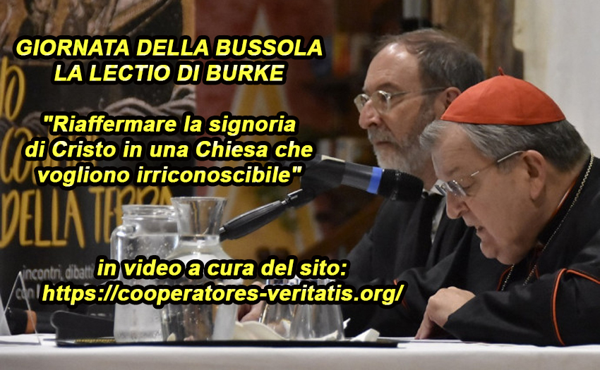 Riportiamo integralmente dell’incontro del cardinale Burke alla Giornata della Nuova Bussola spiegata, qui a seguire, da Riccardo Cascioli (con tutti i link connessi) e al termine il testo integrale della lectio di Burke accompagnato da un nostro video di catechesi….. Ricordiamo solo alcuni argomenti simili trattati di recente: