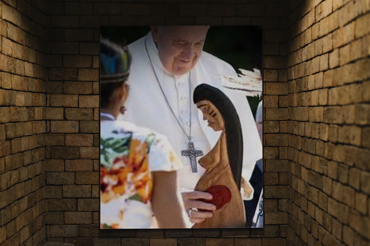 Torniamo ora all’omelia del Santo Padre: dopo aver illustrato il senso dei primi due termini della sua definizione, Sua Santità si sofferma sul terzo, « mestiza », e Cecilia Seppia, la commentatrice di Vatican News, traduce così le sue parole: « [Maria] ha voluto essere meticcia, si è mescolata, ma non solo con Juan Diego – il veggente che tra il 9 e il 12 dicembre 1532 vide imprimersi per miracolo sul proprio mantello la figura della “Morenita”, come lì viene chiamata la Vergine Maria –, è diventata meticcia per essere madre di tutti, si è meticciata con l’umanità. Perché lo ha fatto? Perché lei ha ‘meticciato’ Dio e questo è il grande mistero: Maria madre meticcia, che ha fatto Dio, vero Dio e vero uomo, in suo Figlio Gesù ».