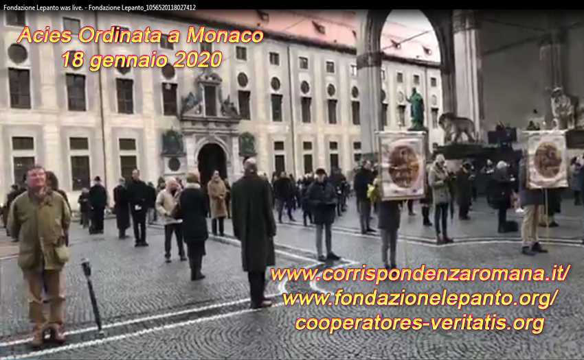 Siamo lieti di pubblicare, congiuntamente al sito della Fondazione Lepanto, curatore dell’iniziativa, di Corrispondenza romana, degli amici di Chiesa e post concilio, del Blog di Marco Tosatti, di Aldo Maria Valli, di cronicasdepapafrancisco.. ed altri, l’evento che si sta svolgendo oggi a Monaco dell’Acies Ordinata, come già avvenne per febbraio e settembre 2019, vedi qui. Qui la pagina di FB della Fondazione Lepanto.