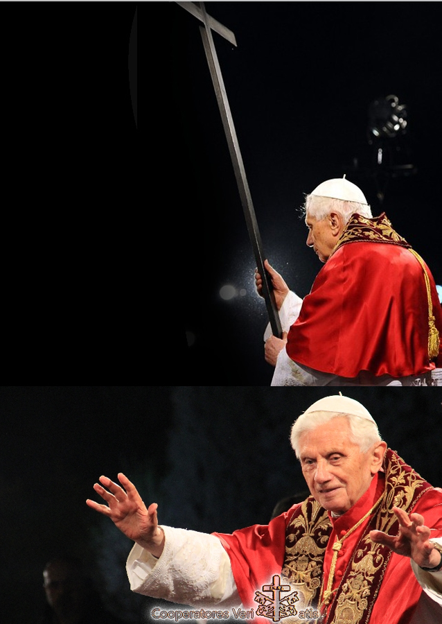 Centrato sul mistero della Passione è il Venerdì Santo, giorno di digiuno e di penitenza, tutto orientato alla contemplazione di Cristo sulla Croce. Nelle chiese viene proclamato il racconto della Passione e risuonano le parole del profeta Zaccaria: “Volgeranno lo sguardo a colui che hanno trafitto” (Gv 19,37). E il Venerdì Santo anche noi vogliamo realmente volgere lo sguardo al cuore trafitto del Redentore, nel quale – scrive san Paolo – sono “nascosti tutti i tesori della sapienza e della scienza” (Col 2,3), anzi “abita corporalmente tutta la pienezza della divinità” (Col 2,9), per questo l’Apostolo può affermare con decisione di non voler sapere altro “se non Gesù Cristo e questi crocifisso” (1 Cor 2,2). E’ vero: la Croce rivela “l’ampiezza, la lunghezza, l’altezza e la profondità” – le dimensioni cosmiche, questo è il senso – di un amore che sorpassa ogni conoscenza – l’amore va oltre quanto si conosce – e ci ricolma “di tutta la pienezza di Dio” (cfr Ef 3,18-19).Nel mistero del Crocifisso “si compie quel volgersi di Dio contro se stesso nel quale egli si dona per rialzare l’uomo e salvarlo – amore, questo, nella sua forma più radicale” (Deus caritas est, 12).La Croce di Cristo, scrive nel V° secolo il Papa san Leone Magno, “è sorgente di tutte le benedizioni, e causa di tutte le grazie” (Disc. 8 sulla passione del Signore, 6-8; PL 54, 340-342).