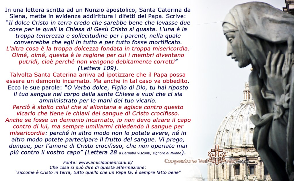 5. Talvolta Santa Caterina arriva ad ipotizzare che il Papa possa essere un demonio incarnato. Ma anche in tal caso va obbedito.