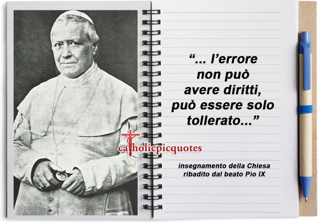 Il “Sillabo”, Documento inserito nell’Enciclica “Quanta Cura” del Beato Pio IX, è di una attualità sconvolgente, poiché la riscontriamo – purtroppo – nella “pastorale” moderna (modernista??) non come correzione degli errori dottrinali lì trascritti, ma come stravolgimento della dottrina e capovolgimento della sana dottrina. Per quanti non lo sapessero, SILLABO, significa “raccolta”, una sorta di sommario, di indice che, in questo caso, fu fatto da Pio IX per correggere lo tsunami – un vero fiume in piena – di errori dottrinali che da tempo, penetrati nella Chiesa, erano diventati non solo invadenti, ma anche prepotentemente in grado di modificare il pensiero e il modo di pensare del cattolicesimo.