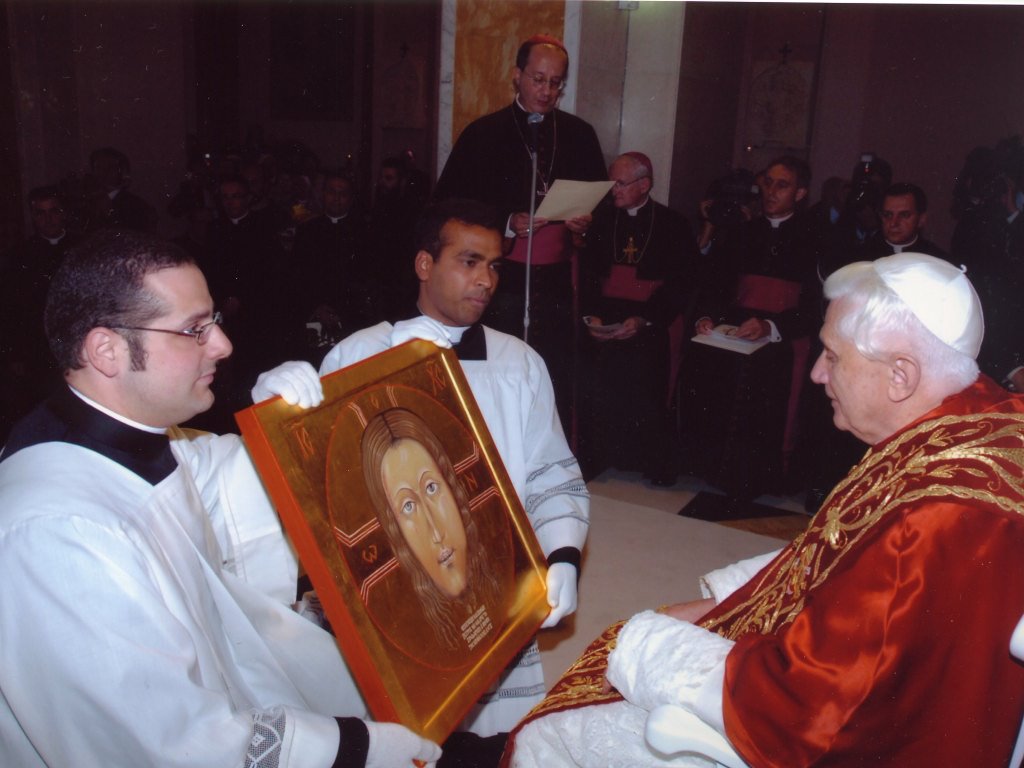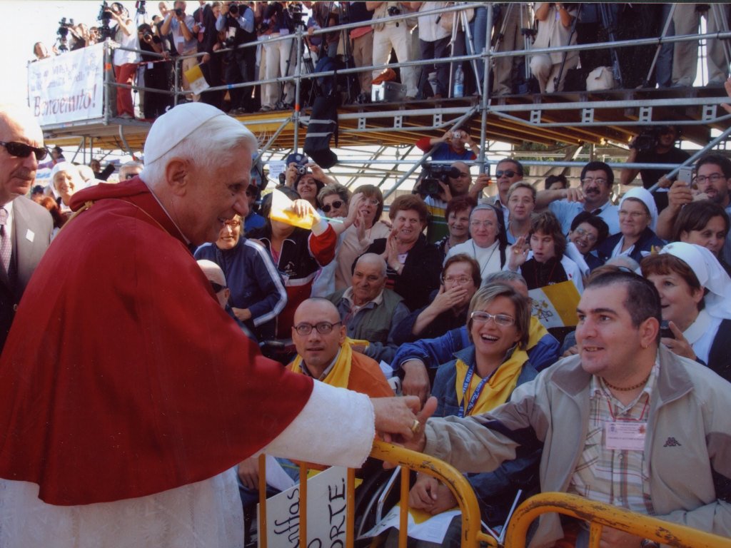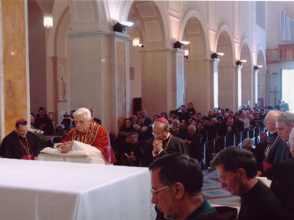 “Noi tutti, come dicono i Salmi, “cerchiamo il Volto del Signore”. E questo è il senso anche di questa mia visita. Insieme cerchiamo di conoscere sempre meglio il volto del Signore e dal volto del Signore attingiamo questa forza di amore e di pace che ci mostra anche la strada della nostra vita..” (Benedetto XVI – Saluto ai Pellegrini a Manoppello, 1° settembre 2006)