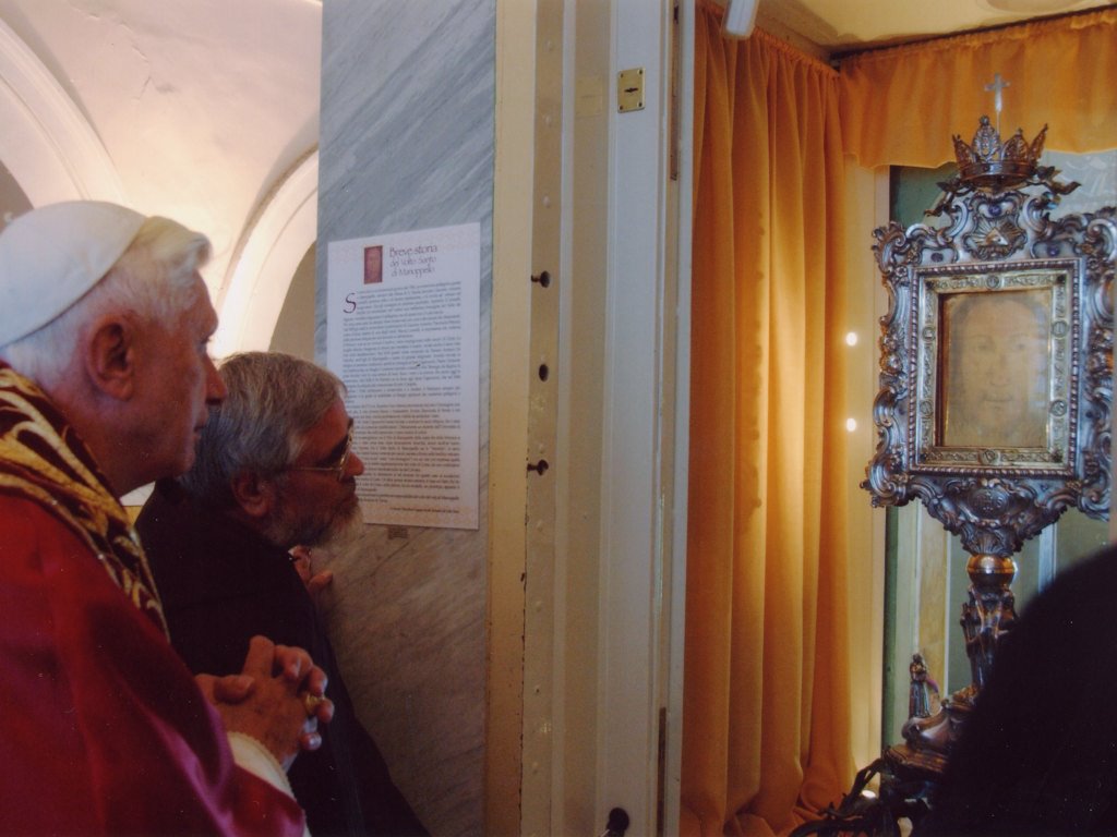 Ed ecco che il 1° settembre 2006 si è verificato un evento che certamente cambierà la storia di questa importante reliquia dell’intera cristianità: la visita di Benedetto XVI al santuario del Volto Santo di Manoppello. Il Papa fra noi, il Papa con noi: «È così che lo abbiamo incontrato, padre, amico, fratello, che non si risparmiava nel salutare tutti, nel benedire tutti. Il Papa teologo che ci ha aperto il Suo cuore di credente, comunicandoci con trasparenza e semplicità l’esperienza vissuta nei lunghi minuti di intensa preghiera davanti a quel Volto. […] Il Papa venuto dalla grande cultura teologica e filosofica tedesca, che non esita a presentarsi come l’innamorato del Signore, che ne ha fatto e ne fa continuamente esperienza».
